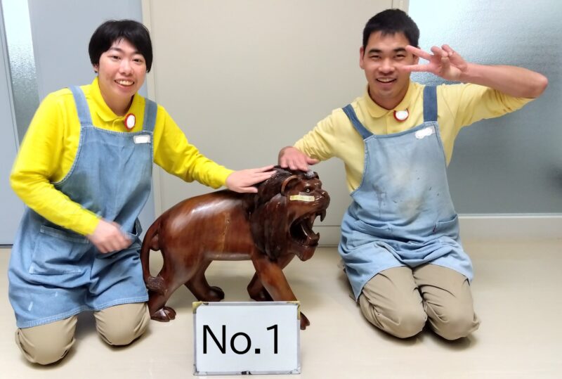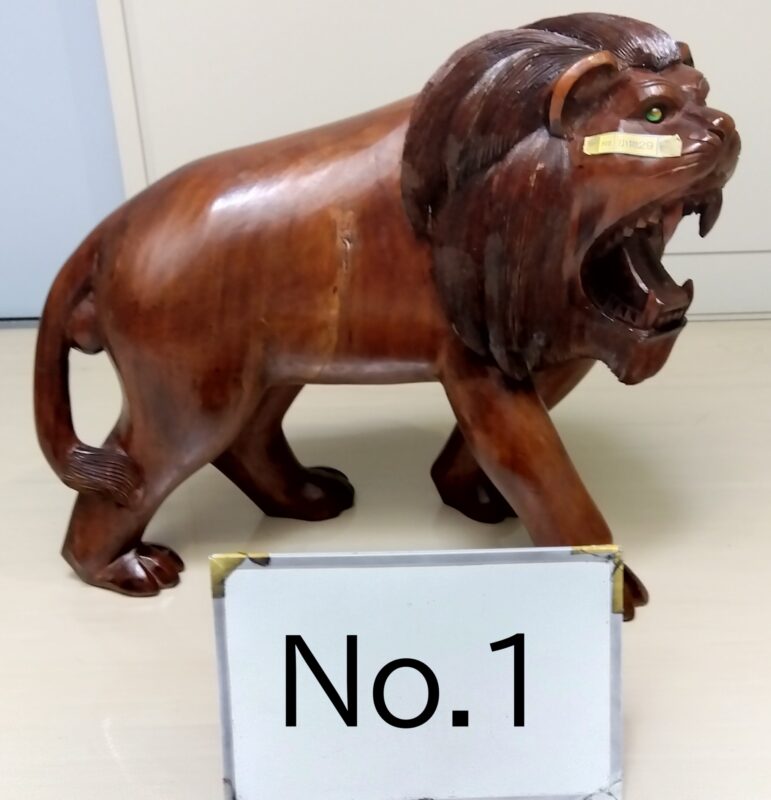 | 品番:No.1 | 品名:ライオン木彫り置物 | 価格:300円 | 規格横幅:62cm | 高さ:51cm | 奥行:24cm |