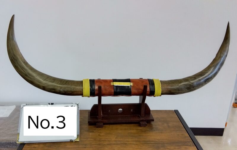 | 品番:No.3 | 品名:水牛の角置物 | 価格:600円 | 規格横幅:120cm | 高さ:32cm | 奥行:12cm |