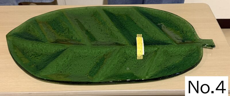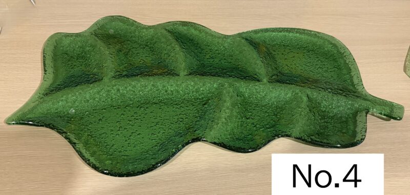 | 品番:No.4 | 品名:リーフ型大皿セット | 価格:800円 | 規格横幅:63cm | 高さ:3cm | 奥行:32cm | ||